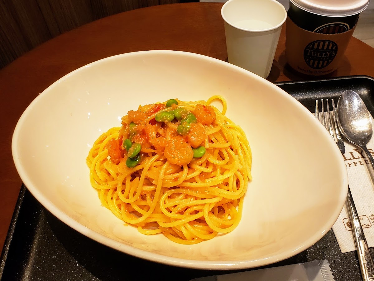 One of the standout dishes at Tully’s Coffee - Otemachi Place 3F is their 小エビと明太子のパスタ (shrimp and mentaiko pasta), a delightful combination of succulent shrimp and the bold, spicy flavor of mentaiko (cod roe). The pasta is expertly prepared, with a rich sauce that complements the freshness of the shrimp and the savory depth of the mentaiko. It's a must-try for anyone looking for something savory and satisfying.